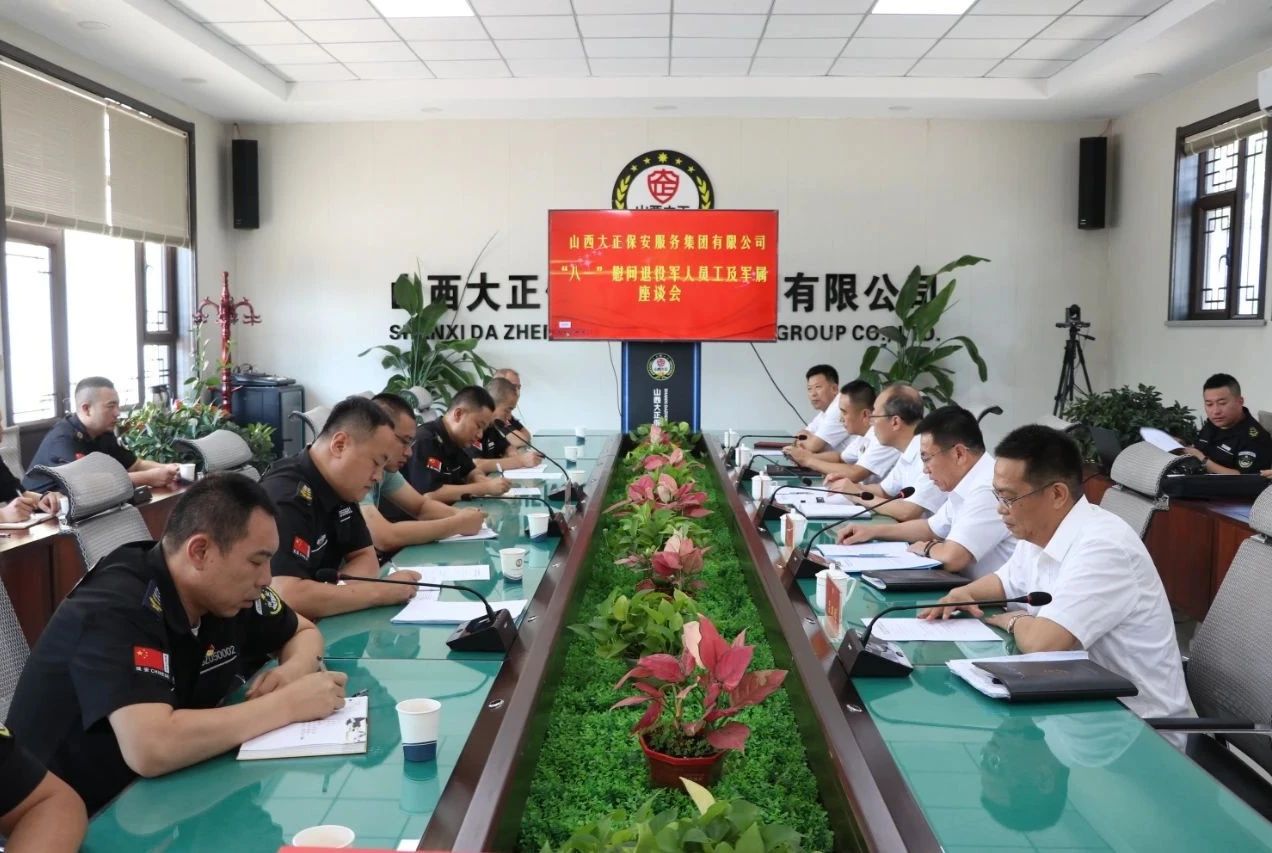 2024年8月1日,在第97個(gè)“八一”建軍節(jié),為深入貫徹落實(shí)習(xí)近平總書記對(duì)退役軍人工作作出的重要指示精神,增強(qiáng)退役軍人榮譽(yù)感,牢記報(bào)國(guó)初心,永葆軍人本色。山西大正保安服務(wù)集團(tuán)有限公司在公司中會(huì)議室隆重舉行了“八一”慰問(wèn)退役軍人員工及軍屬座談會(huì)。集團(tuán)公司領(lǐng)導(dǎo)及機(jī)關(guān)退役軍人員工、各子(分)公司、城區(qū)中隊(duì)退役軍人員工代表、軍屬代表30余人參會(huì)。此次活動(dòng)旨在向?yàn)楣景l(fā)展做出重要貢獻(xiàn)的退役軍人員工及默默支持他們的軍屬表達(dá)崇高敬意和深切關(guān)懷,進(jìn)一步弘揚(yáng)擁軍優(yōu)屬、擁政愛(ài)民的優(yōu)良傳統(tǒng)。