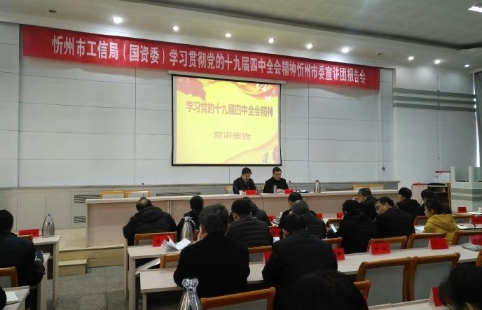 2019年11月26日上午,忻州市工信局(國(guó)資委)學(xué)習(xí)貫徹黨的十九屆四中全會(huì)精神忻州市委宣講團(tuán)報(bào)告會(huì)在忻州市委黨校召開(kāi)。市統(tǒng)戰(zhàn)部常務(wù)副部長(zhǎng)鄭慧明同志在報(bào)告會(huì)上作宣講,市工信局黨委書(shū)記、局長(zhǎng)吳瑞峰主持會(huì)議,工信局黨員干部、各監(jiān)管企業(yè)班子成員共180余人到會(huì)。公司黨委副書(shū)記陳志平、黨委委員趙培宏、王明生、邢春生等領(lǐng)導(dǎo)班子成員及相關(guān)人員參加。