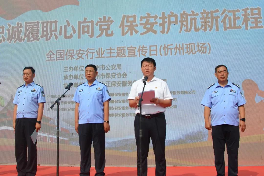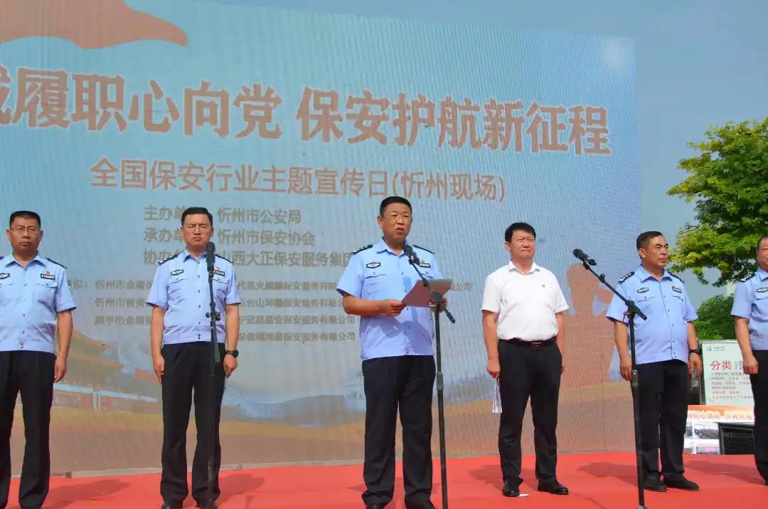 山西大正保安服務(wù)集團(tuán)有限公司黨委副書(shū)記、總經(jīng)理、市保安協(xié)會(huì)常務(wù)副會(huì)長(zhǎng)趙培宏代表忻州市保安協(xié)會(huì)向全市廣大保安員表示親切的慰問(wèn)和誠(chéng)摯的謝意。保安服務(wù)業(yè)是伴隨著改革開(kāi)放和市場(chǎng)經(jīng)濟(jì)發(fā)展而興起的新興服務(wù)產(chǎn)業(yè)。而7月24日這個(gè)日子代表廣大保安員每周7天24小時(shí)全天候提供安全保障服務(wù)。大家夜以繼日奮戰(zhàn)在社會(huì)的各個(gè)角落、守護(hù)著萬(wàn)家的燈火安寧,為這一天賦予了新的含義。他講到,近年來(lái)在市委市政府和政府職能部門的正確領(lǐng)導(dǎo)和高度重視下,我市保安服務(wù)業(yè)蓮勃發(fā)展,在服務(wù)經(jīng)濟(jì)社會(huì)發(fā)展、服務(wù)群眾、健全社會(huì)治安歷控體系和增加社會(huì)就業(yè)等方面,發(fā)揮了越來(lái)越重要的作用。