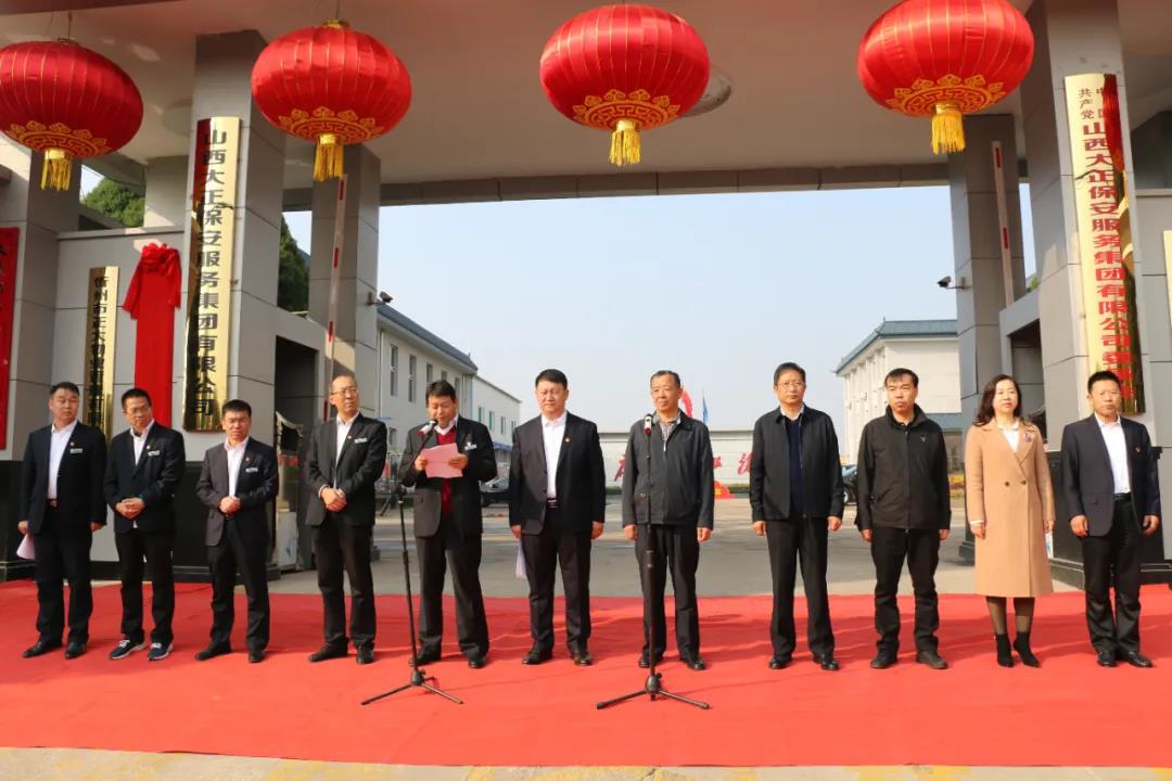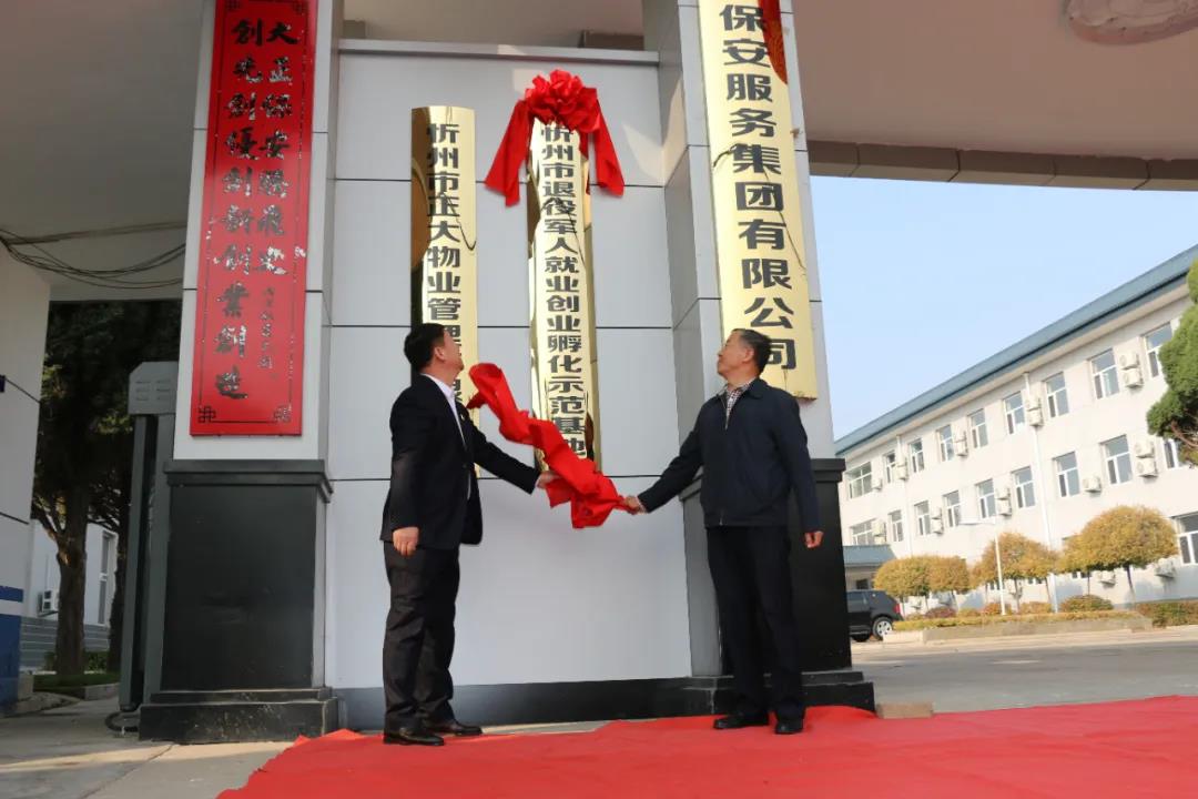 忻州市退役軍人事務(wù)局張培觀副局長和山西大正保安服務(wù)集團(tuán)有限公司黨委副書記、總經(jīng)理趙培宏共同為基地揭牌。