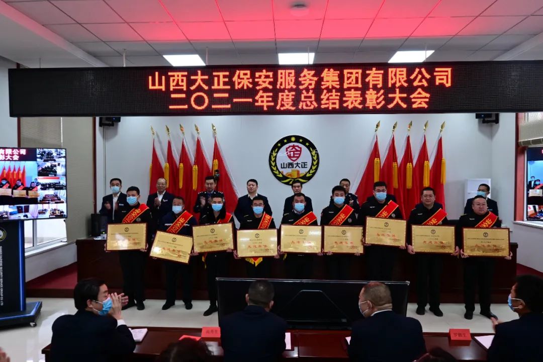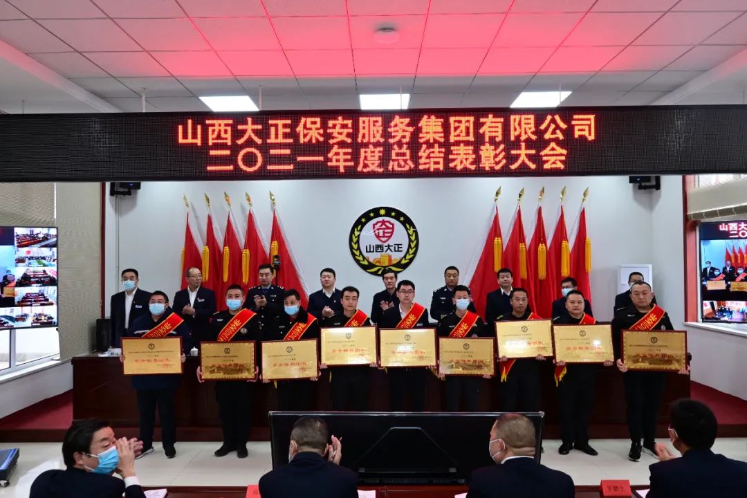 2022年1月20日上午,山西大正保安服務(wù)集團有限公司召開二0二一年度總結(jié)表彰視頻會議。集團公司黨委副書記、副總經(jīng)理陳志平主持會議,黨委副書記、總經(jīng)理趙培宏出席會議并講話,黨委委員、副總經(jīng)理王明生宣讀《山西大正保安服務(wù)集團有限公司二0ニ一年度“雙先”評比表彰決定》。市工信局(國資委)黨委委員、二級調(diào)研員劉建文,忻州市公安局黨委委員、副局長楊德華,忻州市公安局治安支隊負責(zé)人張志鵬出席會議。公司領(lǐng)導(dǎo)、中層副職以上管理人員、各中隊長(負責(zé)人)受表彰先進集體、先進個人代表在主會場參會。機關(guān)職工、基層各單位員工代表在22個分會場以視頻方式參會。