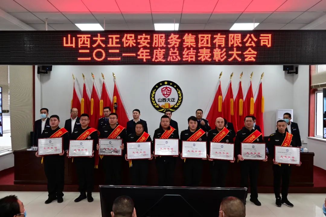 王明生宣讀《山西大正保安服務(wù)集團有限公司二0ニ一年度“雙先”評比表彰決定》。隨后進行了頒獎儀式。對受表彰的2021年度先進單位、先進集體、安全標(biāo)兵團隊、新聞報道先進單位、先進班(車、庫)組、優(yōu)秀管理者、先進個人頒發(fā)獎牌獎狀證書。