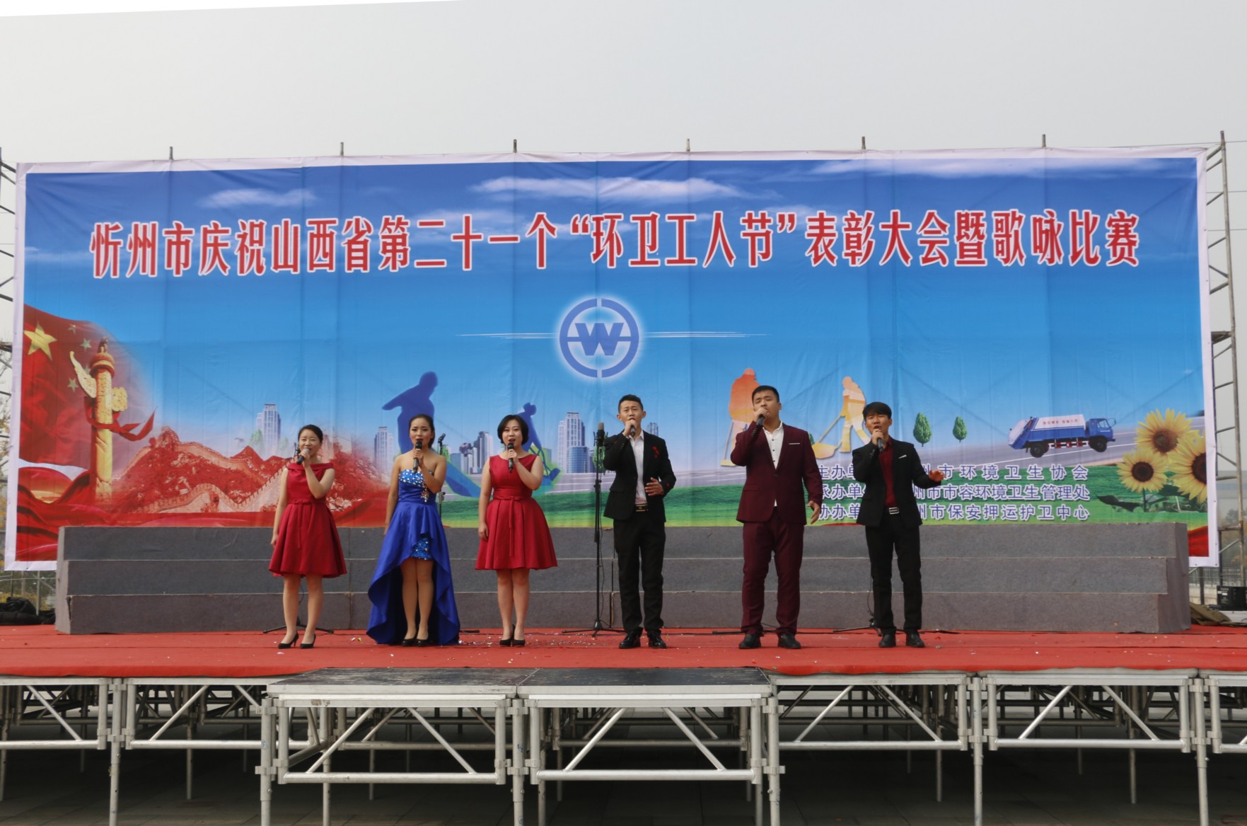 金秋十月,伴隨著十九大的勝利閉幕,環(huán)衛(wèi)工人迎來了自己的節(jié)日“環(huán)衛(wèi)工人節(jié)”。 10月26日上午9時(shí),為了感謝黨和政府對環(huán)衛(wèi)工人的關(guān)心愛護(hù),展示新時(shí)期環(huán)衛(wèi)工人在平凡崗位上積極向上、激流勇進(jìn)的排頭兵風(fēng)貌和不怕苦累的突擊隊(duì)精神,忻州市環(huán)衛(wèi)處“慶祝山西省第二十一個(gè)‘環(huán)衛(wèi)工人節(jié)’表彰大會(huì)暨歌詠比賽” 在大西高鐵忻州站廣場如期舉行,用環(huán)衛(wèi)工人自己的歌聲歌唱我們偉大的祖國。來自全市的千余名環(huán)衛(wèi)工人歡聚一堂,慶祝自己的節(jié)日,市政府副市長武憲堂以及市工會(huì)、市住建局、市環(huán)衛(wèi)處等有關(guān)領(lǐng)導(dǎo)出席會(huì)議,并與環(huán)衛(wèi)工人一同觀看了歌詠比賽。