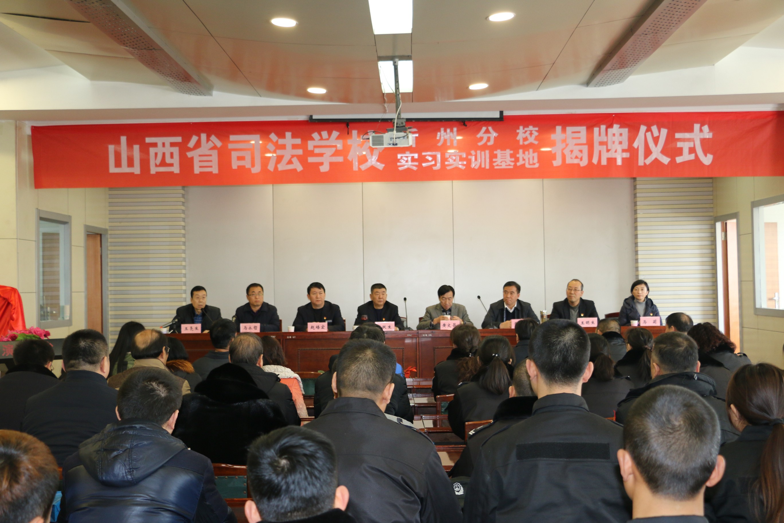 山西省司法學校忻州分校于2018年1月8日在我公司實訓基地掛牌。公司總經(jīng)理張躍生、副總經(jīng)理趙培宏、王明生、總經(jīng)理助理羅鵬生、蔡車峰、高秀生、宋林兔等領(lǐng)導參加了掛牌儀式。