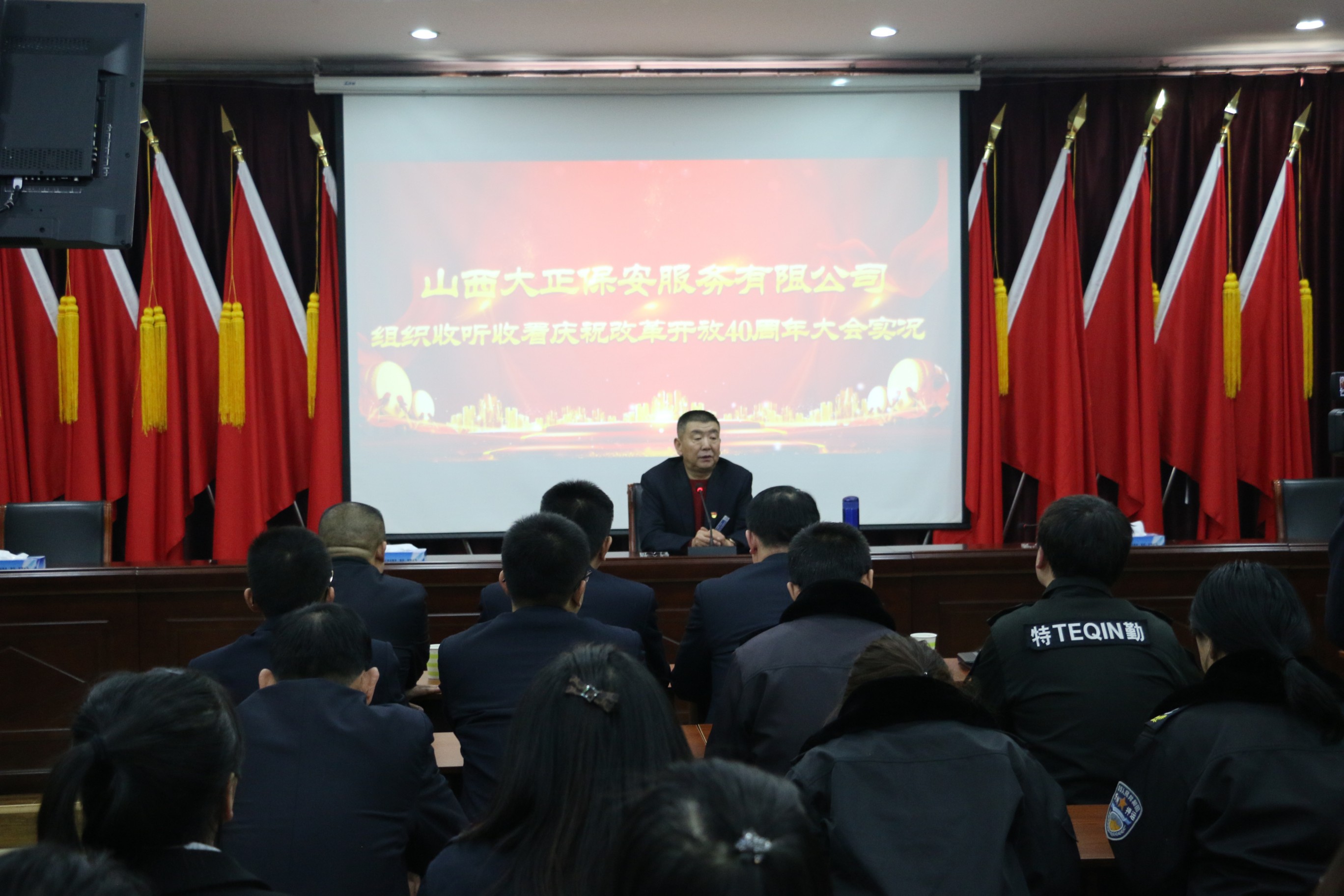 12月18日,山西大正保安服務有限公司組織公司全體黨員干部職工收聽收看慶祝改革開放40周年大會實況直播。