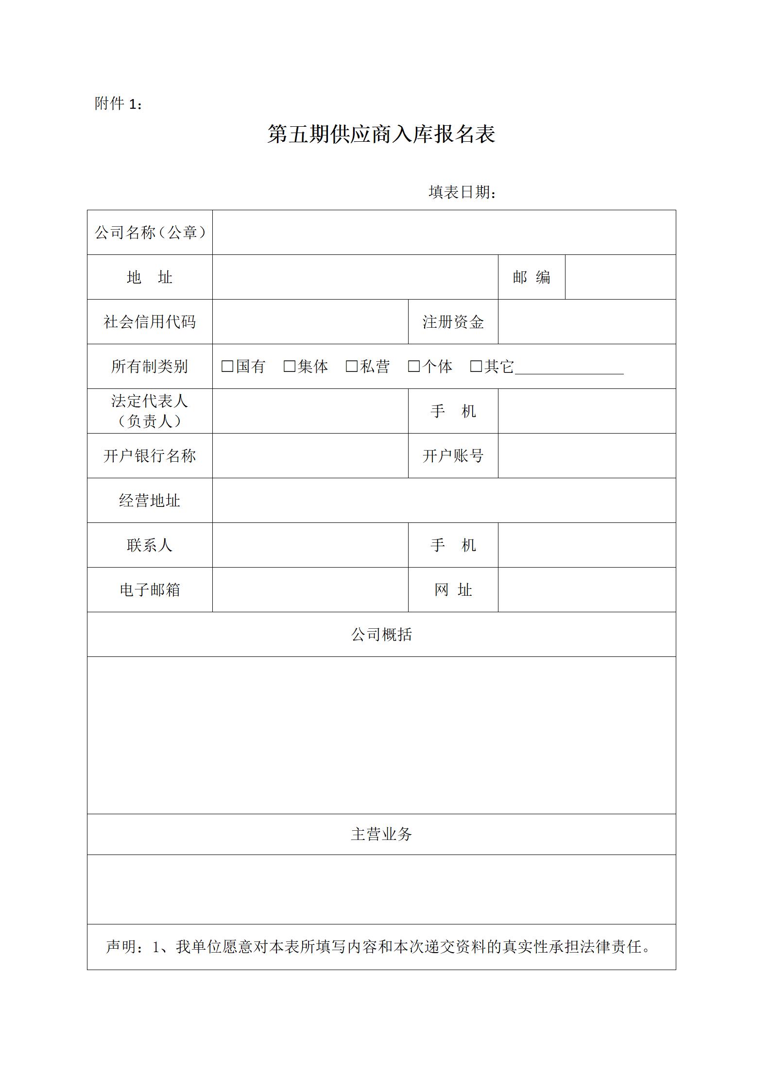 1、供應商入庫報名表(見附件);