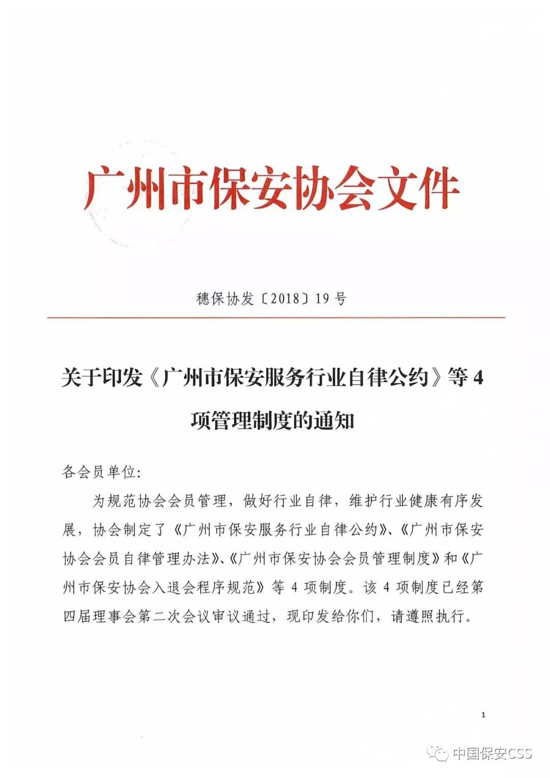 廣州市保安協(xié)會印發(fā)行業(yè)自律公約等4項管理制度