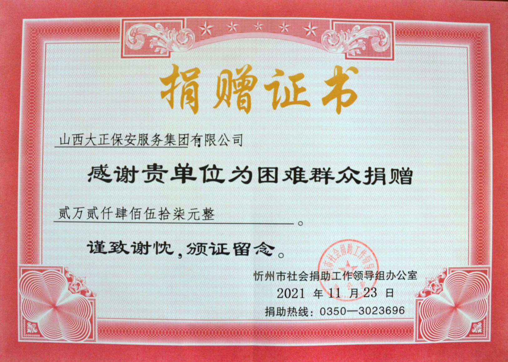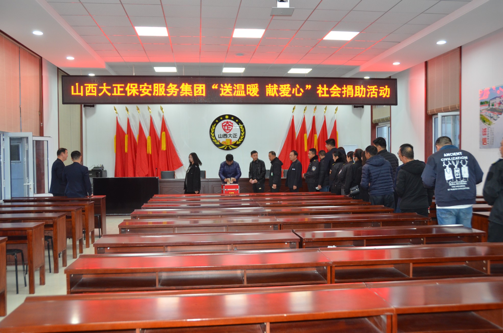 11月15日,集團公司組織領(lǐng)導(dǎo)班子成員及總部駐地全體員工在大會議室參加了社會捐助活動。本次捐助活動,彰顯了山西大正保安集團廣大員工的奉獻擔當精神,也激發(fā)了公司全體員工扶危濟貧的愛心,在全公司上下營造了無私奉獻、助人為樂的濃厚氛圍。