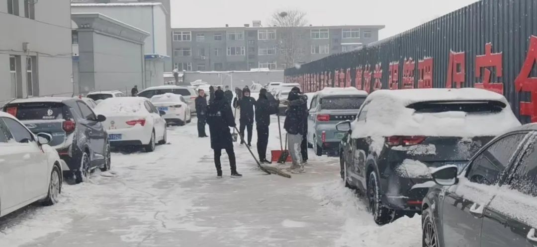 在集團(tuán)公司總部,大家齊心協(xié)力清掃積雪,道路上、臺(tái)階上大家忙碌的身影,成為雪中一道靚麗的風(fēng)景線?偨(jīng)理助理宋林兔現(xiàn)場(chǎng)指揮車輛有序轉(zhuǎn)移,經(jīng)過(guò)不懈的努力,道路漸漸地現(xiàn)出了“原貌”。