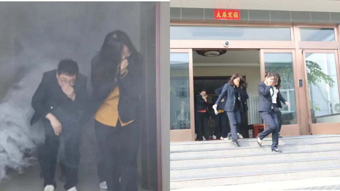 隨著煙霧的升起、消防報警聲的響起,各樓層人員快速、有序地捂住口鼻、彎下身體,快步有序的撤離到辦公樓前安全地帶,隨后,安全保衛(wèi)部清點人數(shù),確保無一人遺漏,整個演練過程緊張有序。演練人員沒有絲毫的慌亂,達到了預(yù)期的效果。