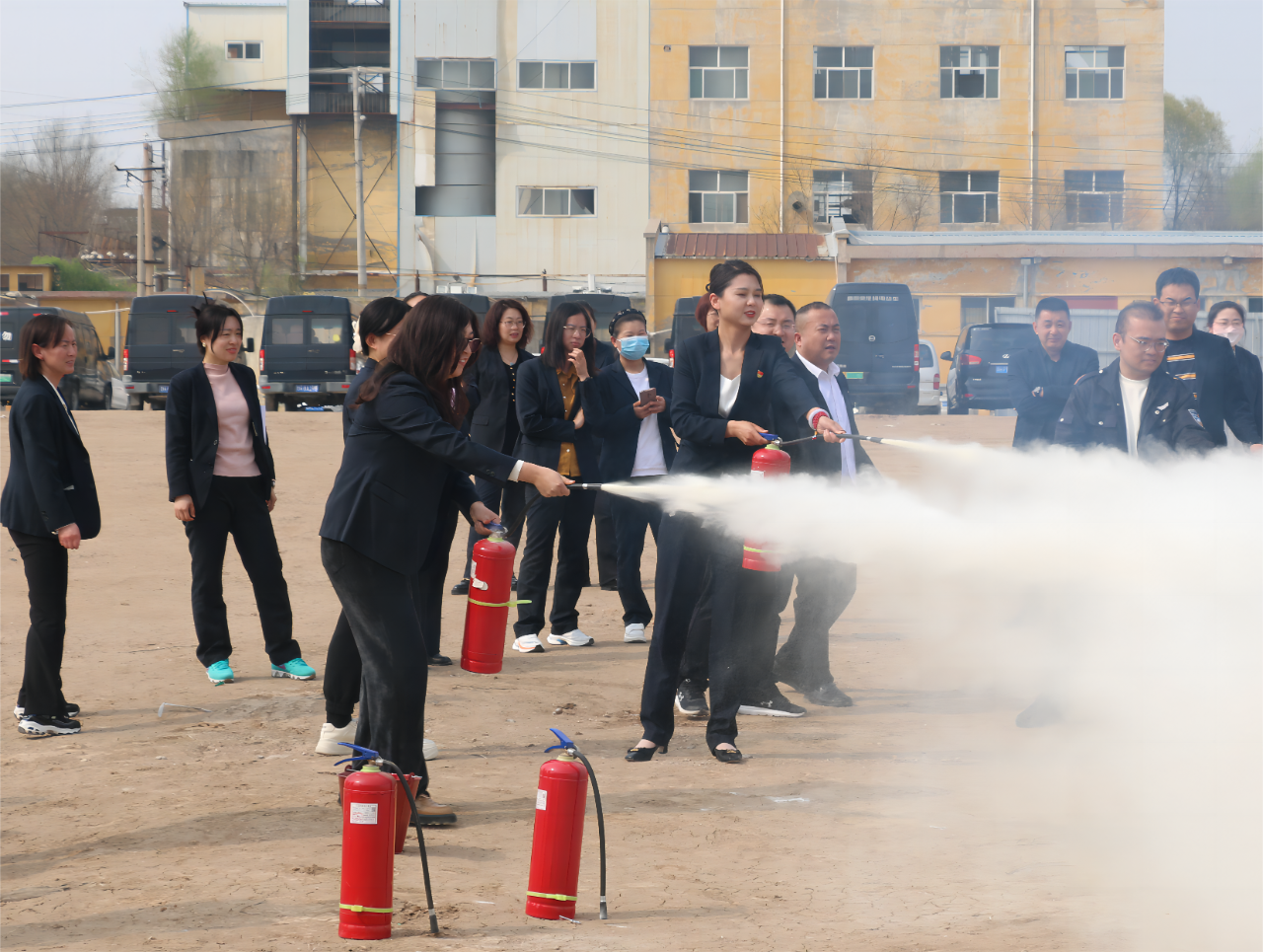 組織員工進行消防演練滅火實操