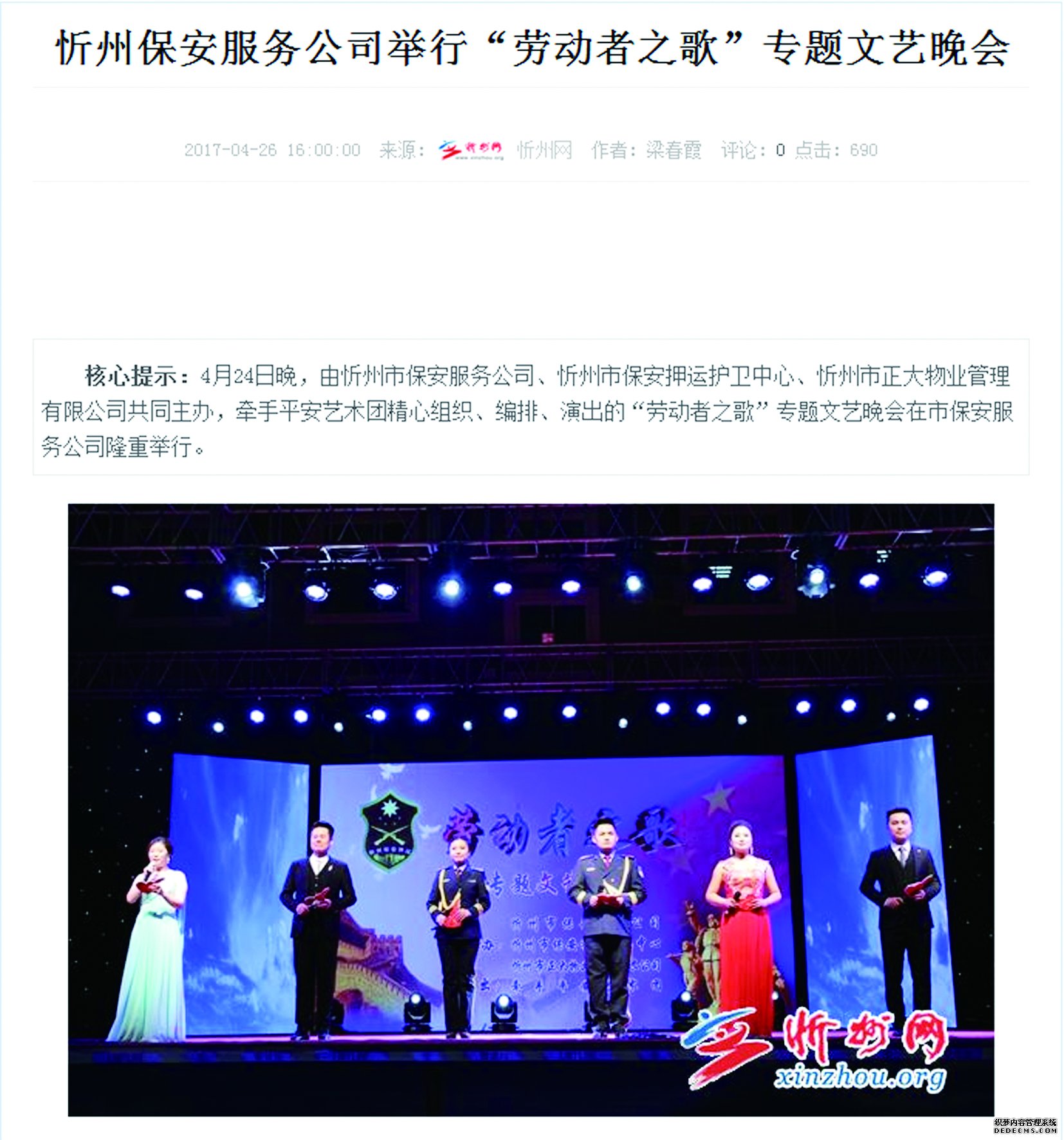 值“五一”國際勞動節(jié)、“五四”青年節(jié)來臨之際,我公司成功舉辦“慶五一·迎五四”系列文體活動。在公司西區(qū)大院舉行“勞動者之歌”專題文藝晚會。舉辦這次活動為進一步豐富員工文化生活、促進溝通交流、增強團隊凝聚力,提高廣大員工的歸屬感和主人翁意識,打造和諧共贏的企業(yè)文化,樹立企業(yè)良好的社會形象。向長期以來關(guān)心、支持公司事業(yè)發(fā)展的社會各界人士表示衷心的感謝。節(jié)目內(nèi)容包括舞蹈、配樂詩朗誦、制式服裝秀、歌曲、小品、曲藝、戲曲等。異彩紛呈的節(jié)目博得觀眾陣陣掌聲,吸引了眾多市民駐足欣賞。