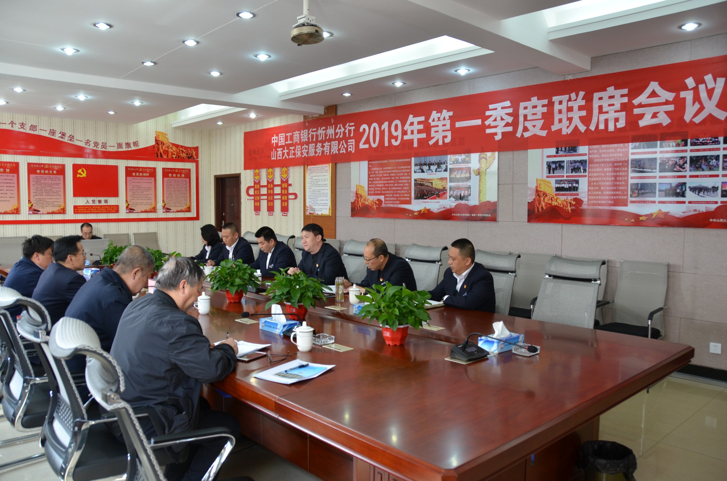 3月29日,公司與工行忻州分行召開2019年第一季度聯(lián)席會議。黨委委員、副總經(jīng)理趙培宏主持會議,工行忻州分行紀檢書記李榮杰,內(nèi)控安全保衛(wèi)部副經(jīng)理徐軍及公司黨委委員、副總經(jīng)理王明生,董事長助理、守押公司副總經(jīng)理寇星云等公司領導參加會議。