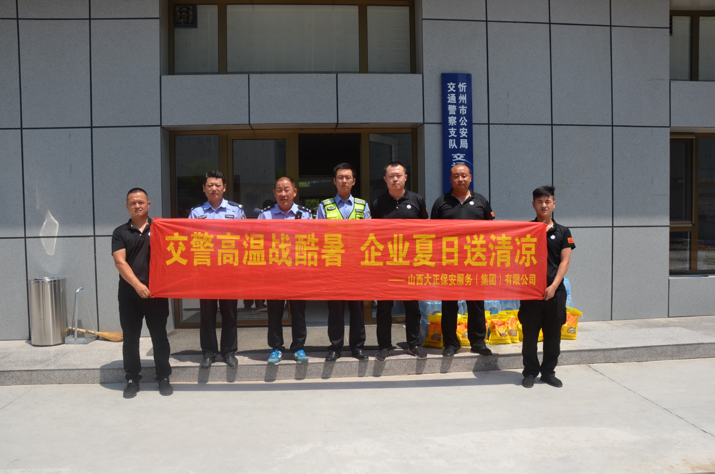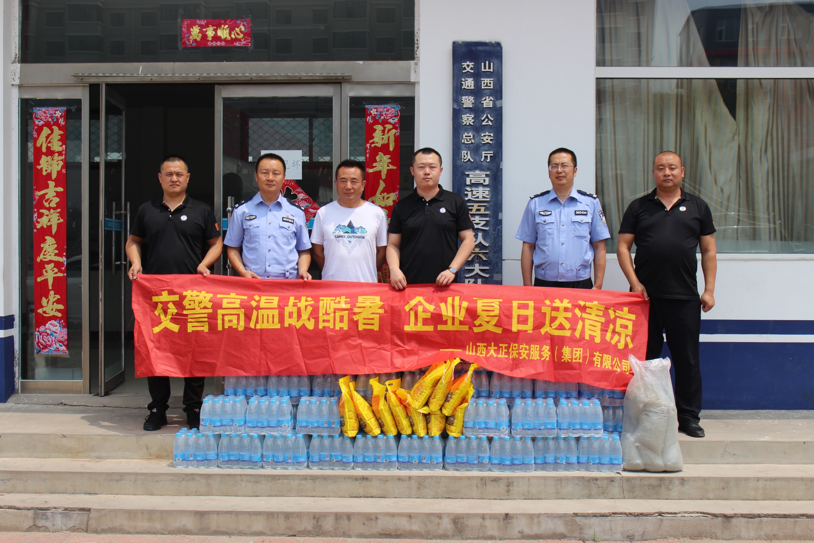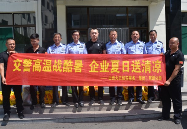 公司慰問人員對一線執(zhí)勤民警在高溫酷暑中堅守崗位,無私奉獻,全力保障市區(qū)道路安全暢通的工作精神表示由衷欽佩,各交警部門負責人對山西大正保安服務(wù)(集團)有限公司對交警部門工作的支持與配合表示感謝,表示將會立足本職,堅守崗位,為人民群眾的生命財產(chǎn)安全保駕護航,為城區(qū)道路的和諧穩(wěn)定貢獻自己的力量。