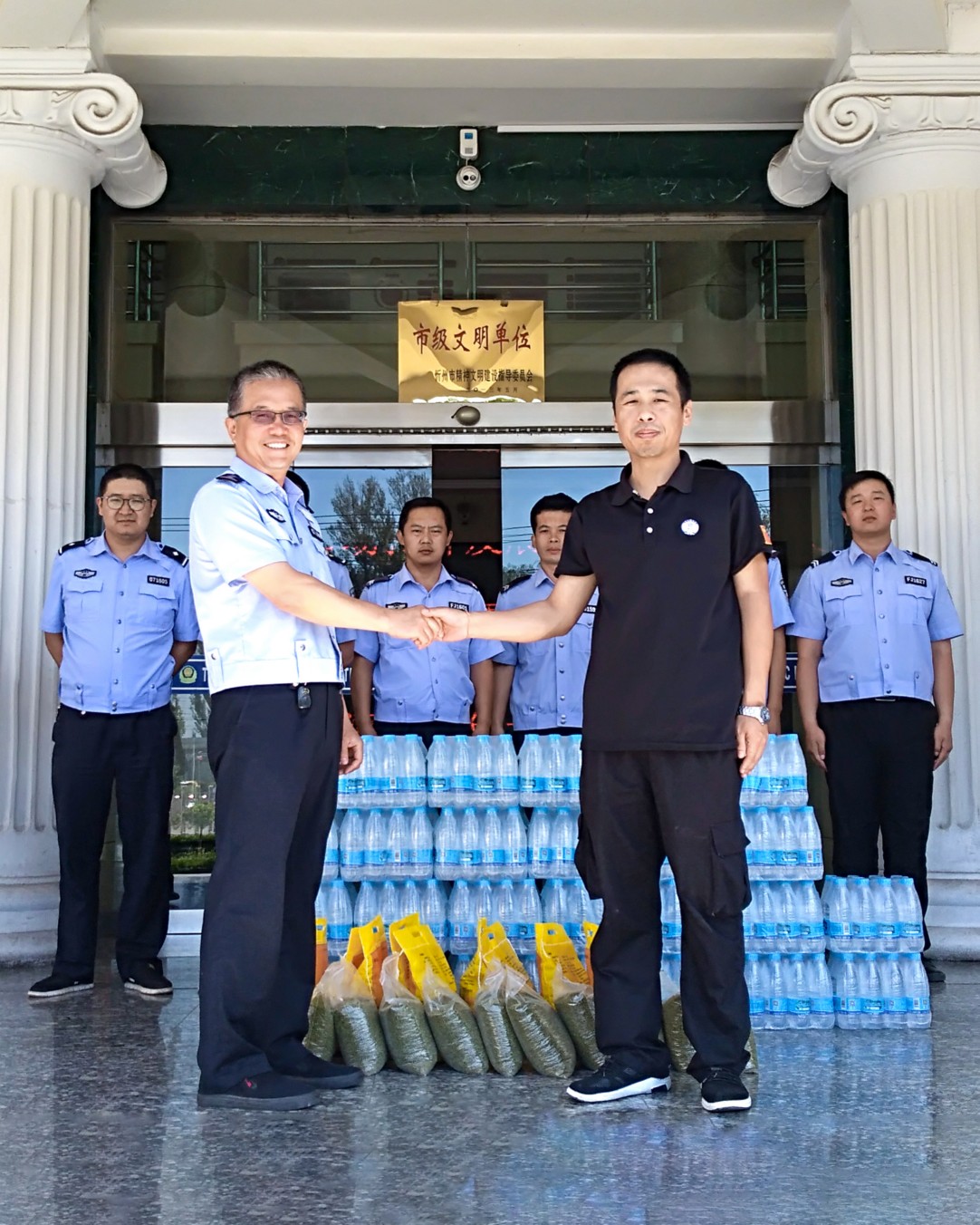 近日,根據(jù)公司統(tǒng)一安排,裝備保障服務(wù)中心牽頭,組織守押公司各基層中隊,前往忻州市區(qū)及各縣市一線交警單位,為烈日下執(zhí)勤的交警一線民警送去降溫解暑的礦泉水、綠豆、小米等慰問物資。
