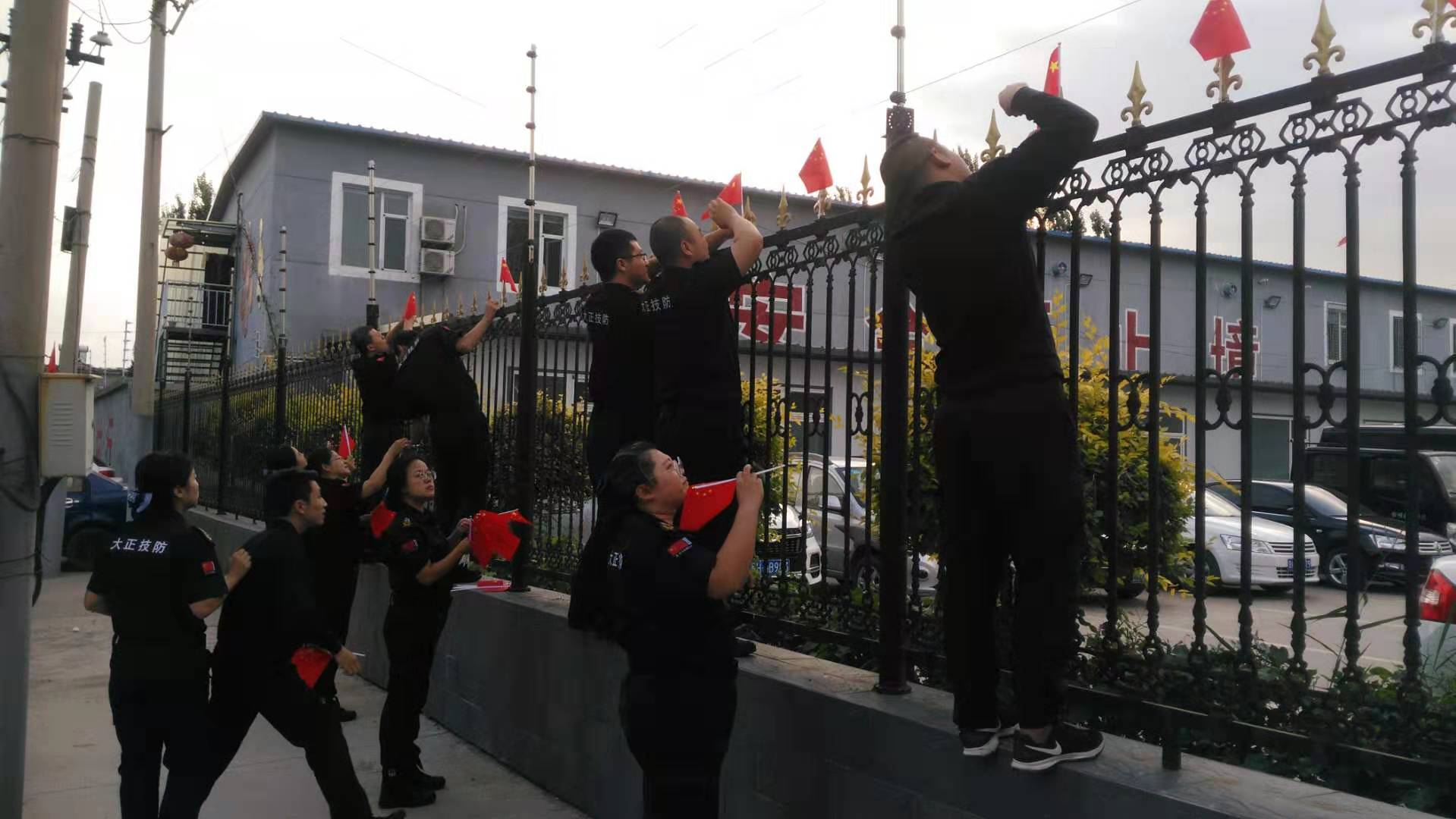 保安直屬公司:祖國母親70周年的生日即將到來之際,直屬公司緊跟集團(tuán)公司步伐,全員上下到處洋溢著迎國慶、頌祖國的氛圍,隊(duì)員們每天到隊(duì)的第一課就是讀新聞、看微信、聊學(xué)習(xí)強(qiáng)國;顒(dòng)期間,隊(duì)員通過懸掛條幅、裝扮辦公場所等方式,紛紛表達(dá)對(duì)祖國的熱愛。(張 路)