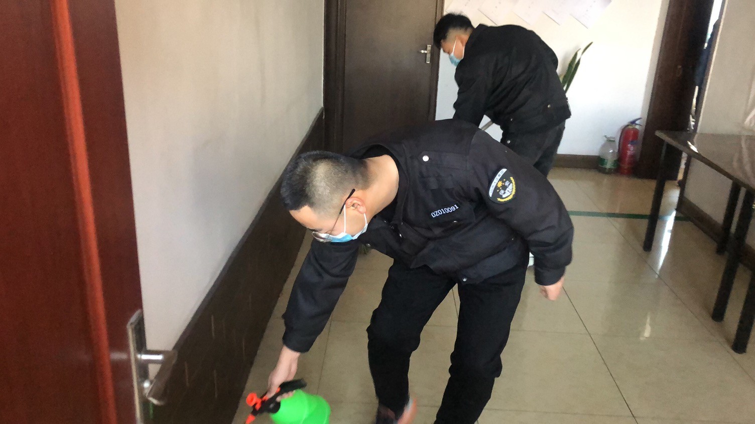 在集體學(xué)習(xí)集團(tuán)公司文件后,張小平要求:一是加強(qiáng)衛(wèi)生知識(shí)宣傳。利用微信群、電子屏、宣傳欄等廣泛宣傳疫情防控衛(wèi)生健康知識(shí),號(hào)召全體監(jiān)控人員養(yǎng)成講衛(wèi)生、愛衛(wèi)生、勤洗手等良好的個(gè)人衛(wèi)生習(xí)慣,做好自我防護(hù)工作。自覺佩戴口罩、手套,勤洗手、勤消毒、勤通風(fēng),不斷提高自身免疫力和抵抗力。二是嚴(yán)抓環(huán)境衛(wèi)生整治。組織在崗人員全面清理站區(qū)內(nèi)所有部位環(huán)境衛(wèi)生。對(duì)監(jiān)控室、食堂、衛(wèi)生間等進(jìn)行清潔打掃,做到無死角、無盲區(qū)。加大清掃頻次,減少垃圾滯留時(shí)間,鏟除病毒生存空間。尤其對(duì)肢體接觸頻繁的門把手、洗手臺(tái)、水龍頭等部位做到重點(diǎn)消毒、反復(fù)擦拭,確保不放過任何一個(gè)遺漏部位。食堂工作人員每天對(duì)食堂、操作間、庫房等衛(wèi)生進(jìn)行徹底打掃和清洗,及時(shí)清理廚房垃圾。三是嚴(yán)格做好自身防護(hù)。上崗前由組長檢查上崗人員手套、口罩等防護(hù)用品的佩戴情況,佩戴不規(guī)范的及時(shí)糾正。各科室加強(qiáng)檢查,對(duì)在崗期間未嚴(yán)格佩戴防護(hù)用品人員嚴(yán)格規(guī)定。四是“堅(jiān)守安保崗位,及時(shí)監(jiān)督警示,真誠服務(wù)到位,助力戰(zhàn)“疫”完勝。”監(jiān)控中心日常工作就比較繁重,監(jiān)控、核查、布防、撤防、登記、提示等,24小時(shí)的值守。在人員緊張的情況下,通過語音呼叫對(duì)講及時(shí)提醒庫內(nèi)人員戴好口罩、禁止吸煙等情況。簡潔的話語,誠摯的提醒,在防控冠狀病毒嚴(yán)峻形勢(shì)下,監(jiān)控中心沒有一名員工退縮。