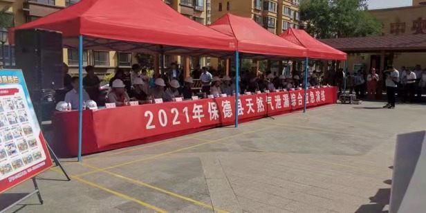 演練科目為上午9時(shí)20分,保德縣新城區(qū)惠民家園東區(qū)七號(hào)樓燃?xì)夤艿辣I用燃?xì)庠斐墒覂?nèi)燃?xì)獯罅啃孤,引發(fā)室內(nèi)燃?xì)獗计鸹,燃燒引燃廚房內(nèi)雜物,且爆燃造成的陽臺(tái)玻璃破碎散落,周圍群眾較多場面混亂,造成一人輕傷一人被困,現(xiàn)場人員立即向燃?xì)夤緢?bào)警。