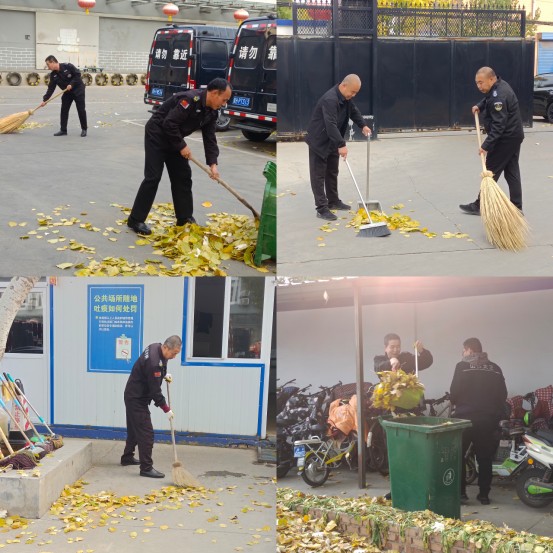 及時清掃落葉不僅能消除火災隱患,還能為隊員們營造整潔舒適的工作、休息環(huán)境;他們用自己的實際行動展示了不怕臟,不怕累,吃苦耐勞,無私奉獻的精神,同時也為守押一公司安全防護打下了堅實的基礎。