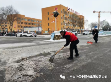 在支部書記張龍的帶領(lǐng)下,同志們冒著雪后嚴(yán)寒,掃帚鐵鍬齊上陣,分別在主干道、交通路口及辦公樓區(qū)域開展清掃積雪活動。由于車輛碾壓,雪已凝結(jié)成冰,清理較為困難,但這些卻絲毫沒有影響大家的熱情和效率,大家齊心協(xié)力,分工合作,鏟的鏟,掃的掃,終于將道路的積雪和冰清掃干凈,同志們火紅的志愿服與皚皚白雪相互映襯,形成一道獨(dú)特亮麗的風(fēng)景。熱情驅(qū)寒意,行動暖人心,通暢的道路帶給大家的不僅是方便和安全,更傳遞了一份溫暖和正能量。