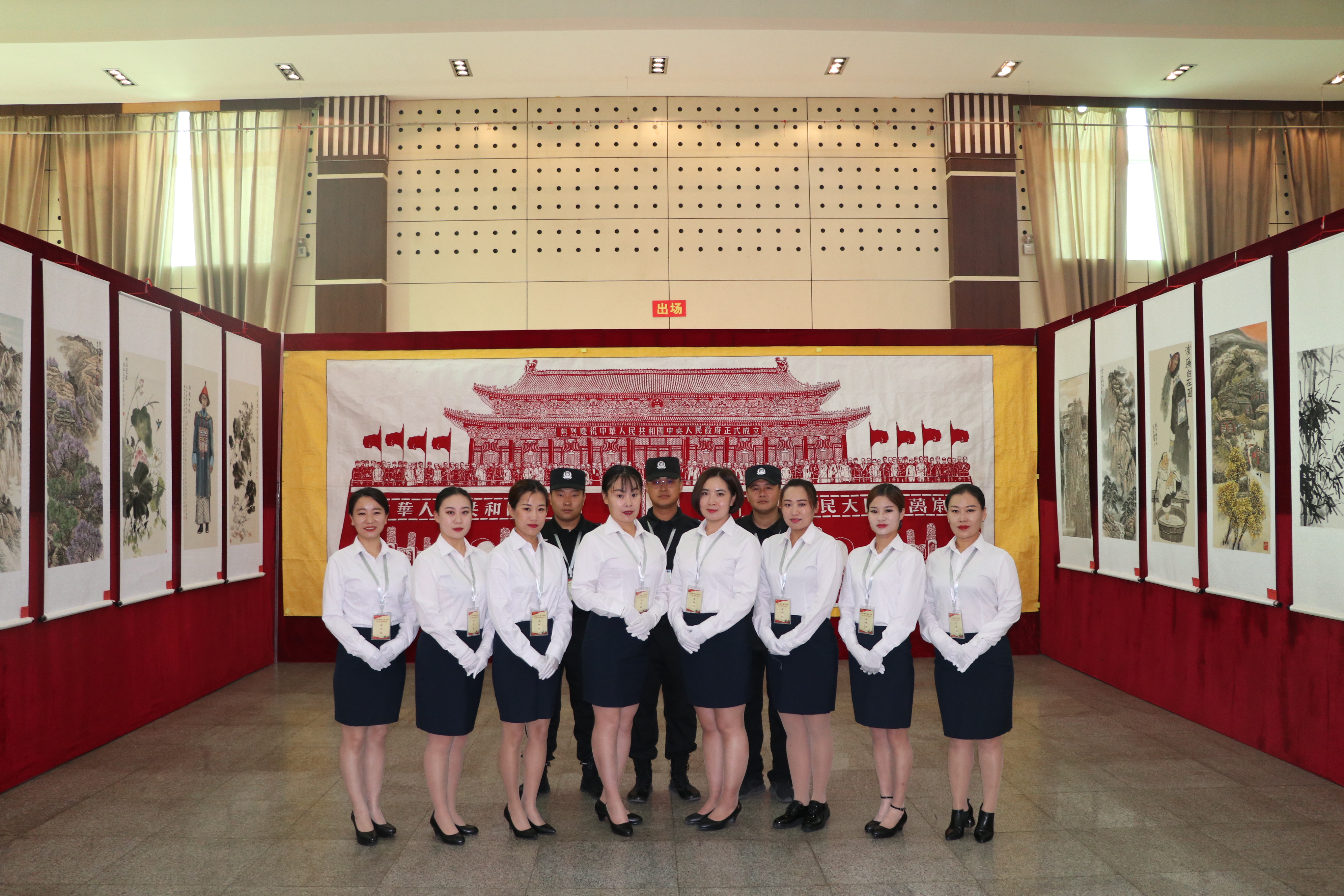此次巡展意義非凡,文化藝術(shù)公司更是嚴(yán)陣以待。9月19號(hào)到黨校進(jìn)行為期4天的會(huì)場(chǎng)布置,在男隊(duì)員外出勤務(wù),隊(duì)里沒(méi)有男隊(duì)員的情況下,女隊(duì)員們充當(dāng)搬卸工,實(shí)木的桌椅又大又沉,女隊(duì)員們喊著號(hào)子,堅(jiān)持著硬是搬了200余張桌子,千余把椅子,四天里搬桌椅協(xié)助男隊(duì)員搭桁架,掛展出的作品,隨處都有女隊(duì)員的身影。巡展現(xiàn)場(chǎng),8名女隊(duì)員負(fù)責(zé)禮儀引導(dǎo),微笑服務(wù),在場(chǎng)的領(lǐng)導(dǎo)紛紛為我們的女隊(duì)員豎起大拇指。